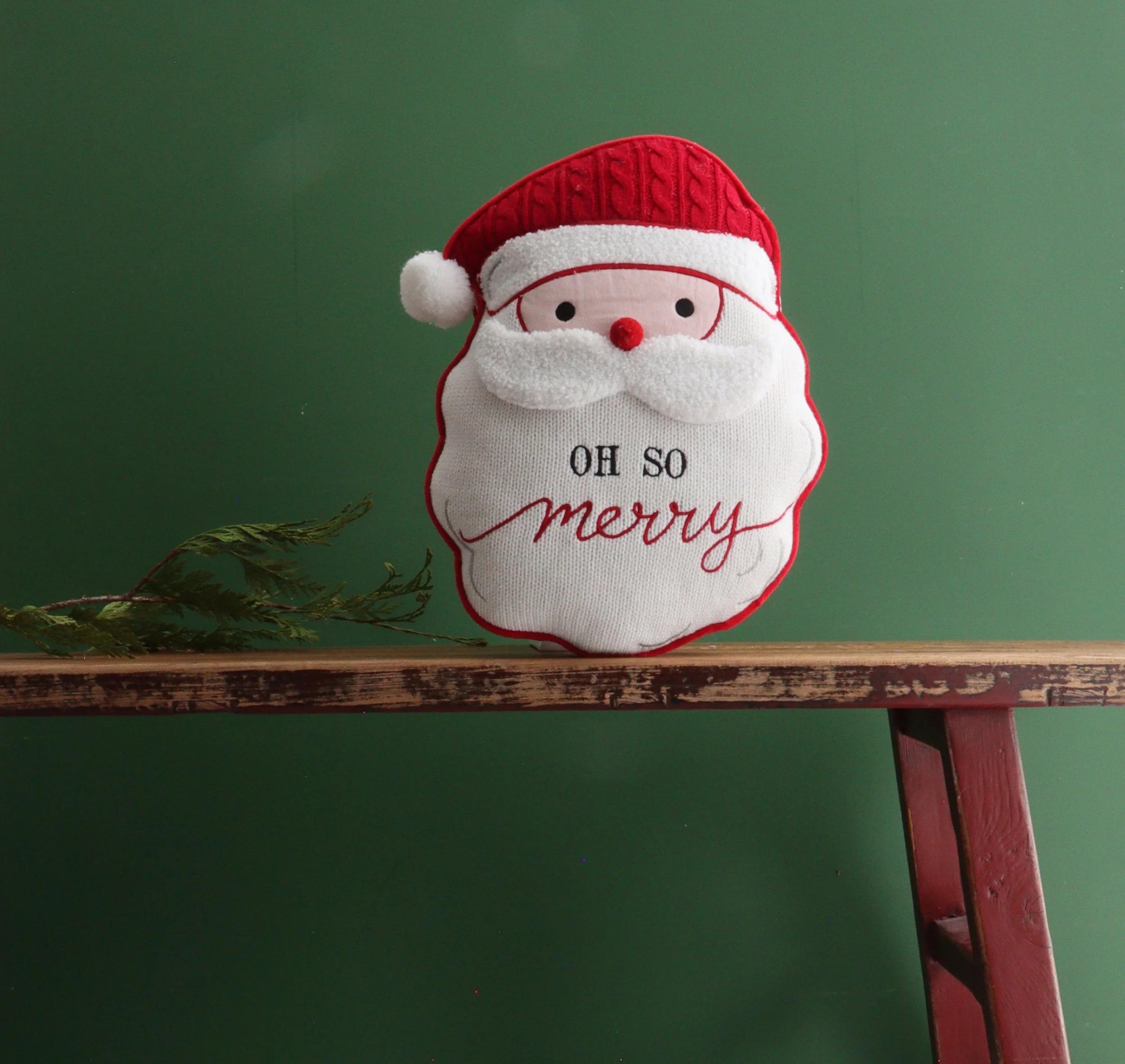 Santa Oh so Merry shaped cushion adds holiday charm to any space. Polyester